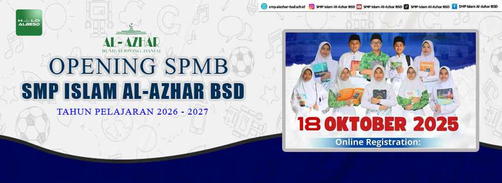 Yukkk.... Ayah/Bunda segera daftarkan putra-putri nya ke SMP Islam Al-Azhar BSD Tahun Pelajaran 2026-2027 . Dibuka tanggal 18 Oktober 2025